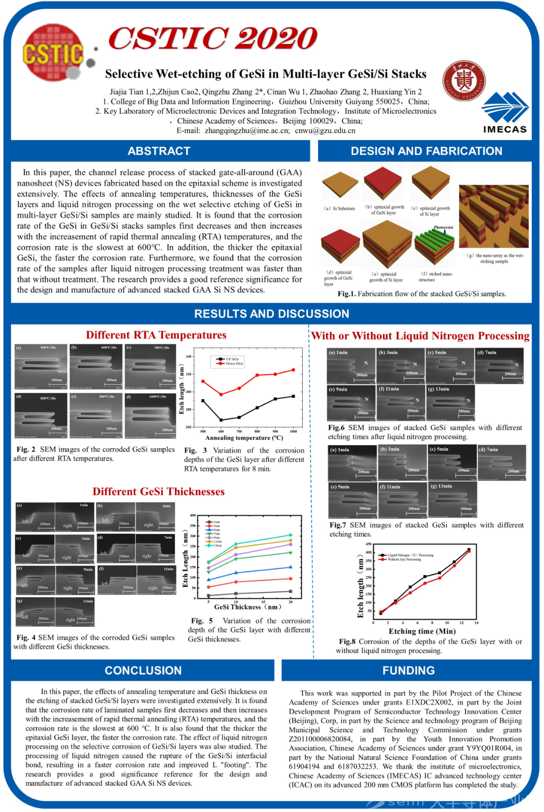 為期四周的中國國際半導體技術大會(CSTIC 2022)網絡會議在SEMI云平臺(v.semi.org.cn)于7月12日正式結束,經committee專家推薦與評審后,CSTIC 2022 Poster主席IBM公司Hsiang-Lan Lung宣布了最終的獲獎名單,來自中科院微電子所的Jiajia Tian、來自中芯國際的Yuning Guo、Jian Wang、Zhenchao Sui以及來自上海集成電路研發中心的Xiaoxu Kang從超過180篇poster中脫穎而出,獲得最佳Poster大獎。