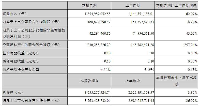 8月30日,露笑科技發布2021上半年業績報告。上半年,公司實現營業收入為18.55億元,同比增長62.07%,歸屬于上市公司股東的凈利潤1.61億元,同比增長6.29%。