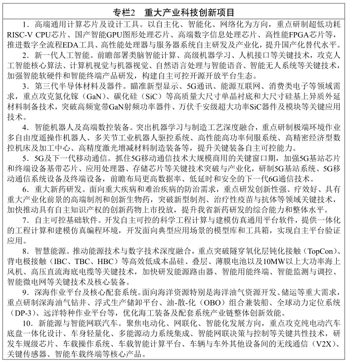 重大科技項(xiàng)目是為實(shí)現(xiàn)關(guān)鍵領(lǐng)域自主可控,通過(guò)集中力量辦大事的制度優(yōu)勢(shì)同發(fā)揮市場(chǎng)在資源配置中的決定性作用的有機(jī)結(jié)合,在一定時(shí)限內(nèi)完成的重大戰(zhàn)略產(chǎn)品、關(guān)鍵核心技術(shù)或重大工程,是推進(jìn)科技強(qiáng)省建設(shè)的核心任務(wù)和關(guān)鍵抓手。本規(guī)劃按照產(chǎn)業(yè)科技創(chuàng)新、科技支撐鄉(xiāng)村振興、民生科技示范三類(lèi),共遴選出18個(gè)重大科技項(xiàng)目,根據(jù)全省經(jīng)濟(jì)社會(huì)發(fā)展需要和實(shí)施條件的成熟程度,按照“成熟一項(xiàng)、啟動(dòng)一項(xiàng)”的原則,逐項(xiàng)論證、分步實(shí)施并動(dòng)態(tài)調(diào)整。