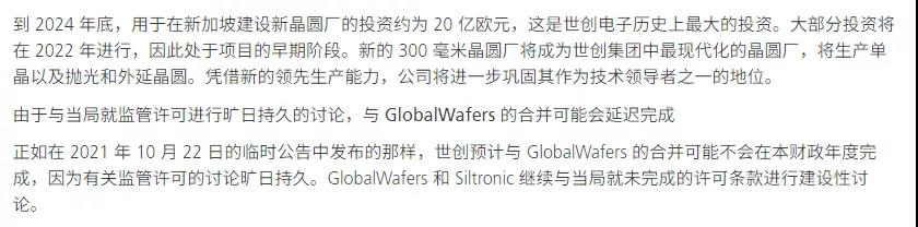 10月22日,Siltronic發(fā)布臨時(shí)公告稱,預(yù)計(jì)與環(huán)球晶圓的合并可能不會(huì)在本財(cái)政年度完成。